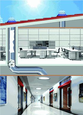 另外光导照明系统通过采光罩的折射、透射、聚焦等原理将光线高效的收集,经由导光管内表面高效反射处理,再引到室内,由漫射透镜对阳光进行打散让光线变的柔和、均匀照射到室内各个角落。