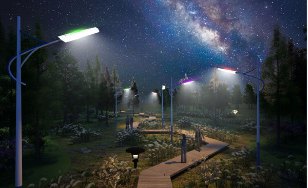 红阳正道一体化光能路灯白天自主发电,夜间正面自动起到照明光线,在灯的背面,还增加五颜六色的景观亮化光线。红阳正道一体化光能路灯本身是自主发电,所以在控制板上,只要增加 Wifi 收发芯片,让路灯安装到哪里,信号就覆盖到哪里。