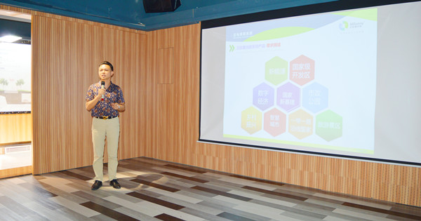 随后,正能量科技CEO覃总及阳光使者陪同来访专家团队来到红阳正道一体化光能路灯路演厅,阳光使者给来访专家团队介绍了一体化光能路灯原理、应用场景等内容;专家团队对集照明、景观、降温、降灰尘、通信于一体的红阳正道一体化光能路灯都表现出了浓厚的兴趣。